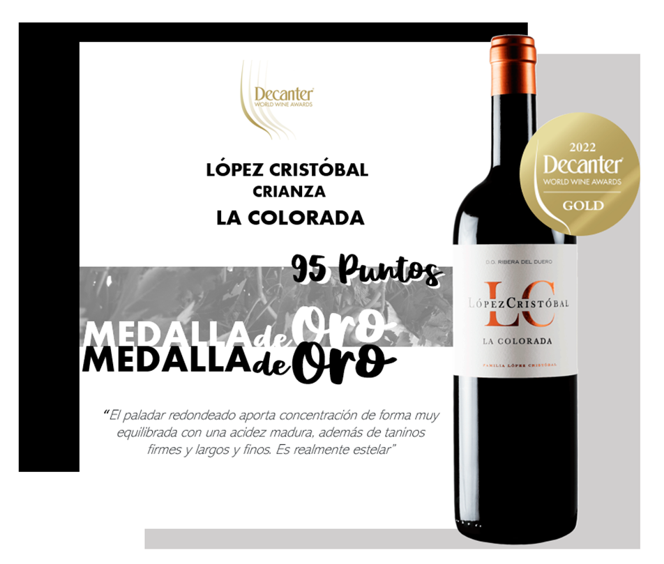 Excepcional puntuación para nuestro López Cristóbal Crianza “La Colorada” en la última edición de los ‘Decanter World Wine Awards’, uno de los concursos de vinos más importante del mundo.