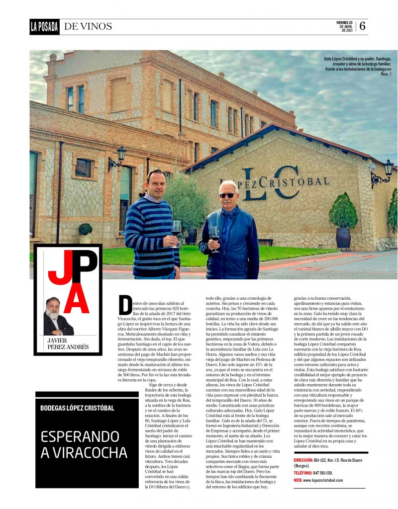 Os dejamos artículo de Javier Pérez Andrés dedicado a Bodegas López Cristóbal.